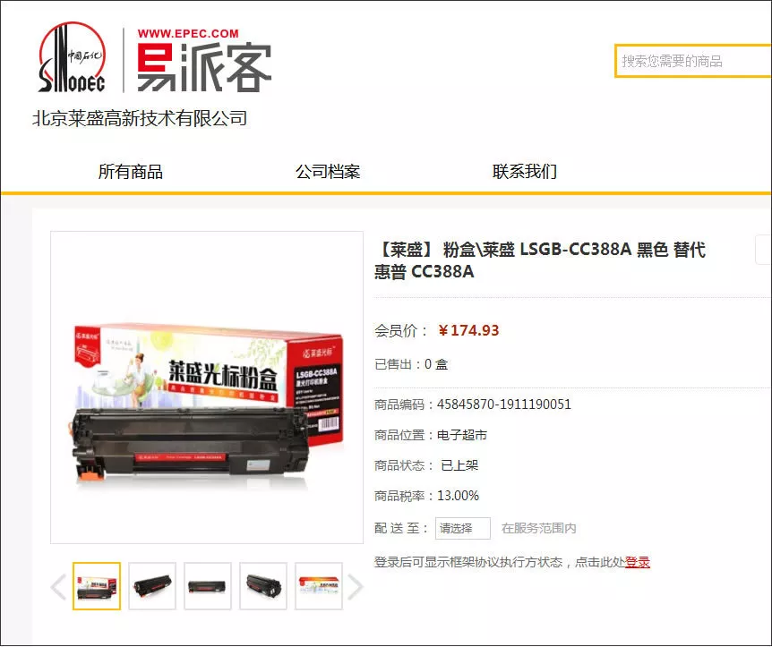 北京萊盛激光打印機/數(shù)碼復(fù)合機耗材產(chǎn)品順利通過各類資質(zhì)的嚴(yán)格審核標(biāo)準(zhǔn),產(chǎn)品正式上線“中石化易派客”平臺,萊盛通過易派客工業(yè)品電子商務(wù)平臺,為全球需求商提供優(yōu)質(zhì)的辦公耗材產(chǎn)品。
