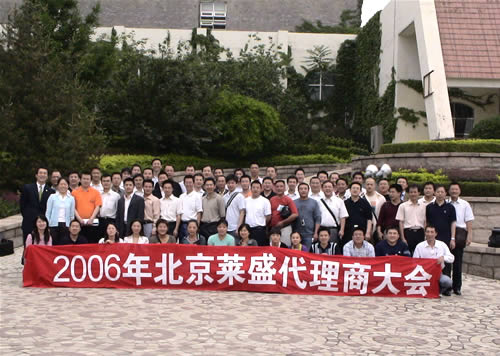 2006年5月18日,“北京萊盛2006年代理商大會(huì)”在北京召開(kāi),來(lái)自全國(guó)的優(yōu)秀代理商130多人受邀到會(huì)。本次代理商大會(huì)于5月18日晚在北京市中關(guān)村維蘭西餐廳進(jìn)行了盛大的歡迎晚宴,隨后代理商大會(huì)移至北京市昌平區(qū)西御園度假中心,由北京著名的培訓(xùn)機(jī)構(gòu)中歐國(guó)際管理咨詢(xún)有限公司高級(jí)講師周建,針對(duì)萊盛公司特點(diǎn)進(jìn)行了為期兩天的行業(yè)培訓(xùn),培訓(xùn)內(nèi)容涉及市場(chǎng)開(kāi)發(fā),銷(xiāo)售經(jīng)驗(yàn),市場(chǎng)競(jìng)爭(zhēng),售后支持等多個(gè)方面。每年一次的優(yōu)秀代理商會(huì)議是萊盛10年來(lái)保持的一貫傳統(tǒng),在了解全國(guó)行業(yè)市場(chǎng),聽(tīng)取經(jīng)銷(xiāo)商建議意見(jiàn)的同時(shí),也為萊盛全國(guó)各地區(qū)的優(yōu)秀代理商們提供一個(gè)交流感情、探討銷(xiāo)售經(jīng)驗(yàn)的機(jī)會(huì)。
