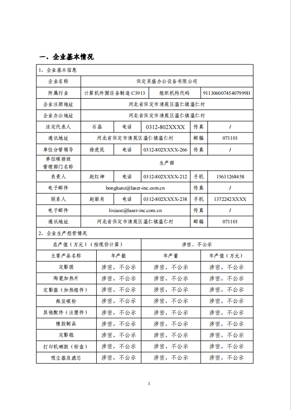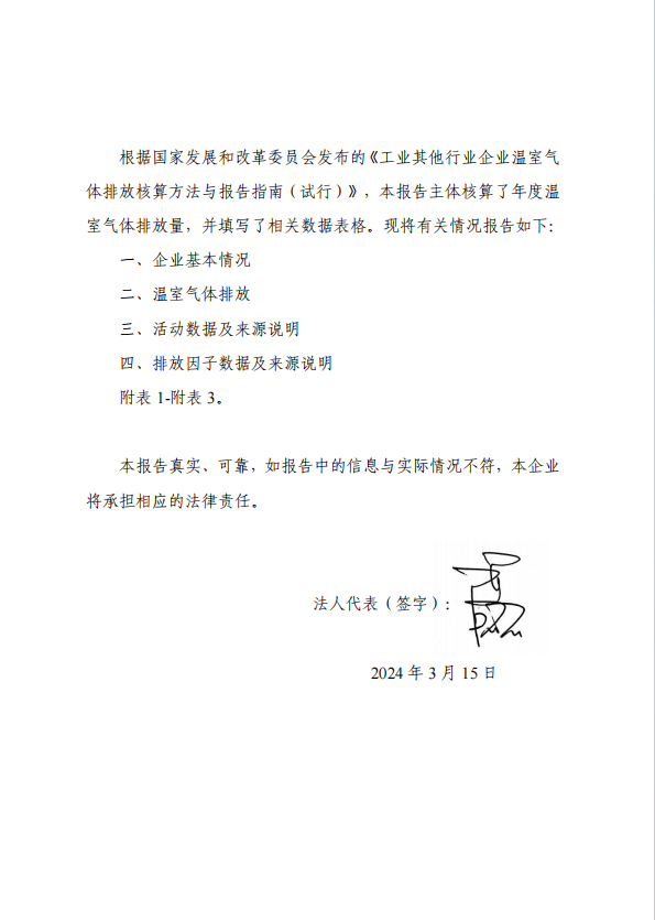 保定萊盛2023年溫室氣體排放報告(公示簡版)