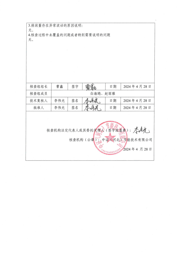 保定萊盛2023年碳核查報(bào)告(公示簡版)